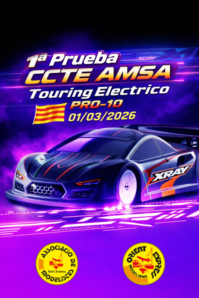 Próximos 28 de febrero y el 1 de marzo celebraremos la primera carrera del campeonato de Cataluña pista eléctrico 1/10 en el circuito de AMSA. En esta carrera participarán las categorías de Touring Electrico y Pro-10. El sentido de la carrera será antihorario (sentido habitual). Sábado entrenos libres y domingo clasificatorias y finales.