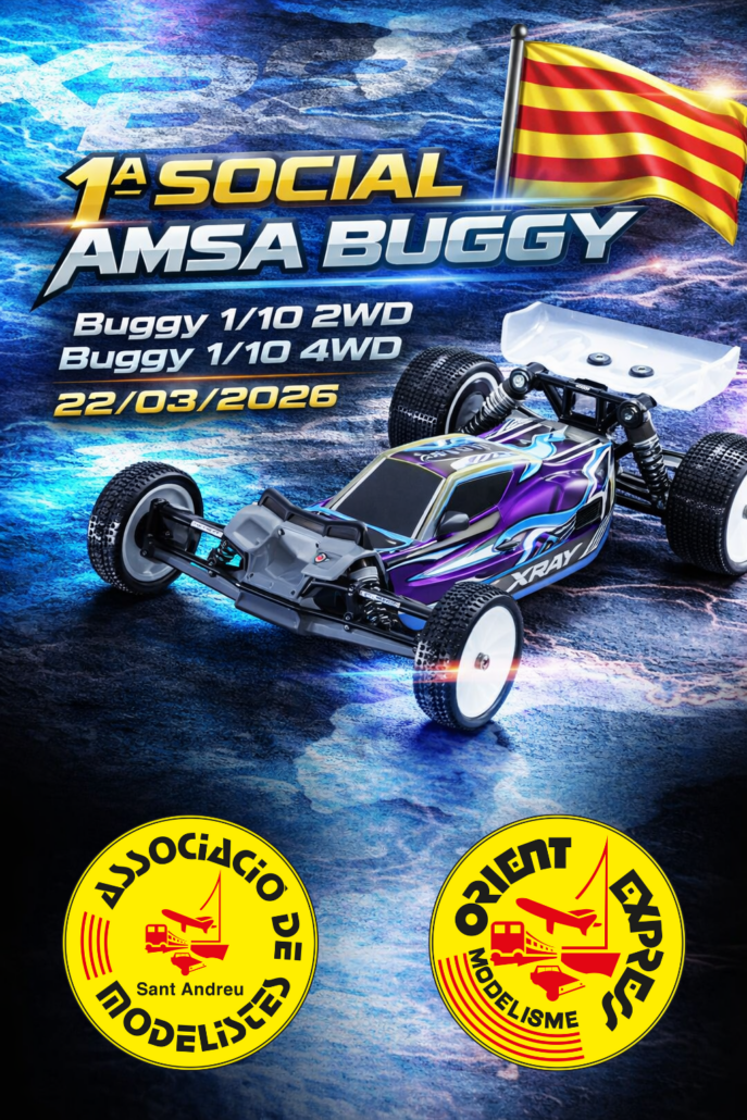 Próximos 21 y 22 de marzo celebraremos la primera carrera del campeonato de social de buggy 1/10 electrico en el circuito de AMSA. En esta carrera participarán las categorías de 2WD y Pro-10. Sábado entrenos libres y domingo clasificatorias y finales.