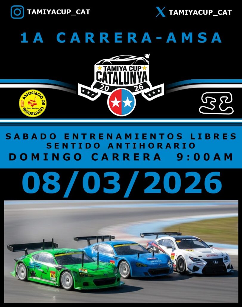El próximo día 7 y 8 de Marzo tendrá cita la primera prueba de la Tamiya Cup en 2026 en las instalaciones d’AMSA (trinitat):